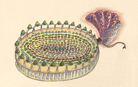 16 Ko sadež dozori do prve stopnje, se začne tekočina v »vreči« gostiti, »vreča« se skrči in postopno sprosti zgoščeno tekočino. Zgoščena tekočina potem pogosto s pecljem vred pade na tla. Potem pridejo prebivalci in to strjenko obirajo (zbirajo), jo po vseh straneh enakomerno obrežejo in iz nje izdelajo posebne pravilne štirikotne mize ter jih uporabljajo tako, kakor vi na svoji Zemlji ogledala. V druge namene tega drevesa ne uporabljajo, razen še za okras, tako kot tudi vi v isti namen uporabljate nekatera drevesa v vaših vrtovih. Potem ko zasadijo vrsto takšnih dreves, nastane čudovit drevored, namenjen prebivalcem. In to drevo prav radi uporabljajo v ta namen, ker ga je mogoče lahko vzgojiti, podobno kot piramidno drevo, le da ne daje dračja, ker sploh nima vej, temveč semena, ki pa ne zorijo v sadežu, temveč v cvetovih.