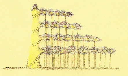 3 Zamislite si, kakšno je takšno cvetoče drevo, ker ne začnejo vse veje cveteti isti dan in je zato tudi pred cvetenjski ogenj na istem drevesu večbarven. In, ko zacveti ves gozd takšnih lijakastih dreves, si lahko že z malo domišljije predstavljate, kako veličasten je videti takšen cvetoči ali bolje rečeno pred cvetoči goreči gozd, ki se včasih lahko razprostira tudi več sto kvadratnih milj daleč.